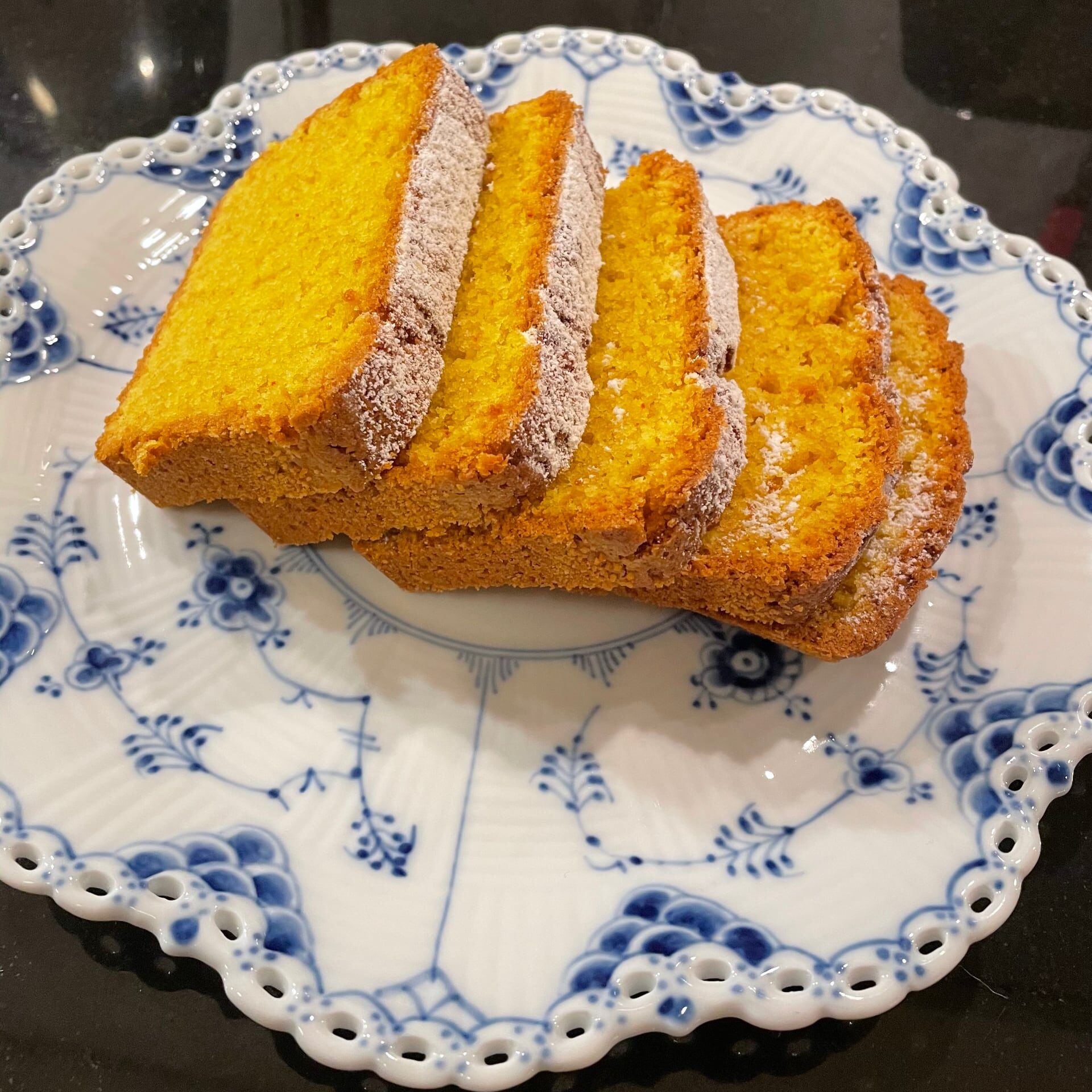 - Pudra vaniljsocker över kakan (förslagsvis med hjälp av en tesil)