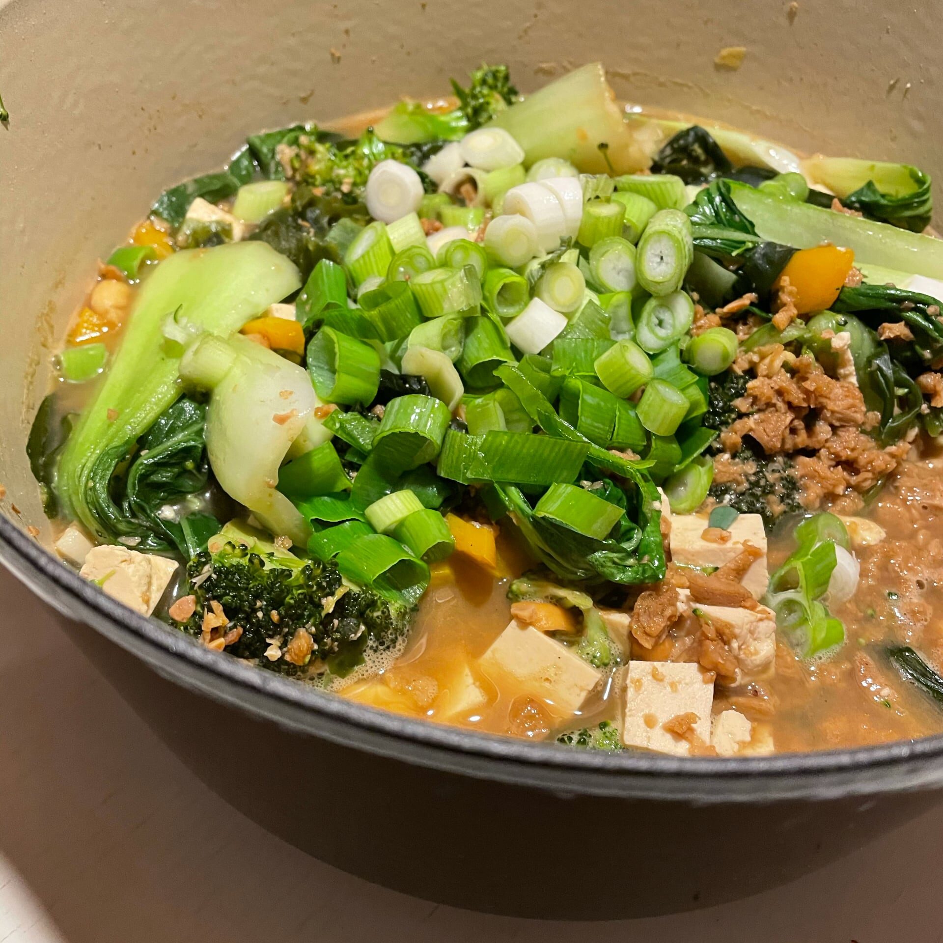 En kryddstark gryta som värmer härligt när det är kallt. Servera med ris eller nudlar. Ätes med sked.