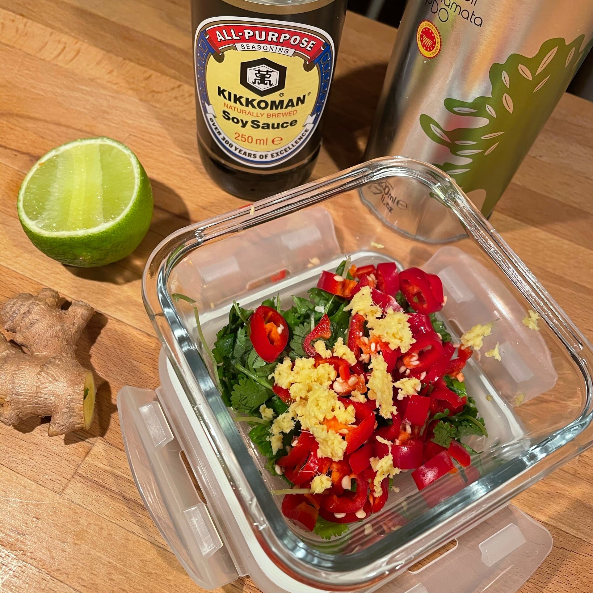 - Riv en bit ingefära så att det blir cirka en matsked, häll ner i burken.